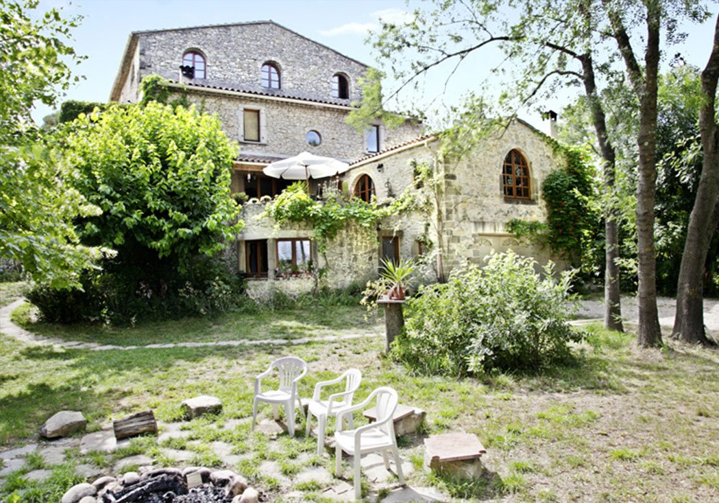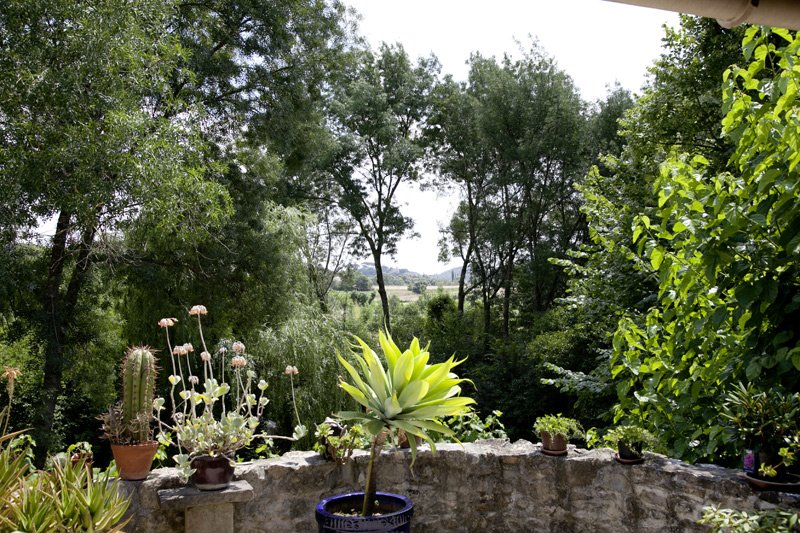 De l’escalier on accède à une belle chambre voutée aux pierres apparentes; au premier étage, la salle de bains spacieuse avec cabine de douche et wc fait face à la deuxième chambre ouverte sur une petite terrasse couverte par une treille. Quelques marches plus haut une grande pièce (cheminée, piano) s’ouvre sur la troisième chambre et la petite salle d’eau + wc. L’escalier se prolonge sur la mezzanine où se trouvent deux doubles lits situés de part et d’autre de cet endroit lumineux offrant une magnifique vue d’est en ouest (des collines de Sérignac au pic St Loup).