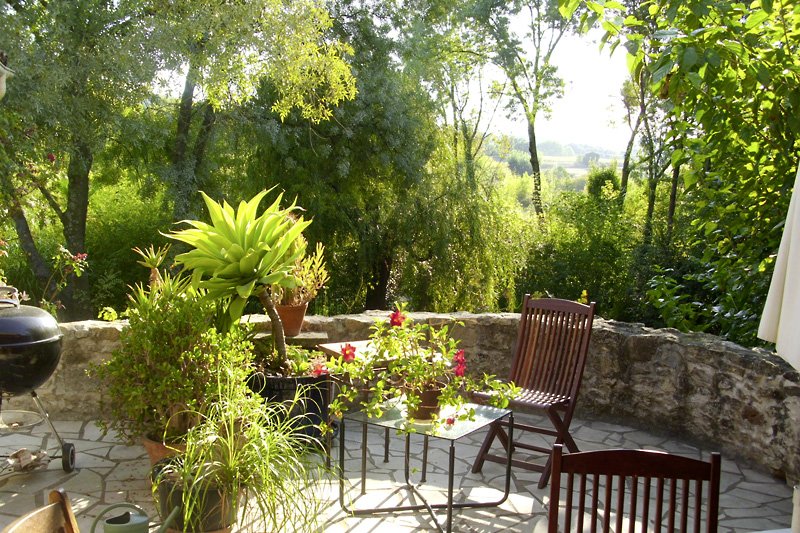 La propriété (jardin, espace de loisirs, parking (6/7 voitures) est clôturée. A partir de la terrasse on accède d’une part au studio (lit double, salle d’eau, wc, petite cuisine équipée), idéal pour un couple avec un bébé (lit, chaise haute) et d’autre part à la maison; au rez de chaussée cuisine, salle à manger, salon belles pièces voutées qui gardent une fraicheur agréable et ouvrent sur une petite cour ombragée, où l’on peut s’isoler. Buanderie et toilettes au même niveau.